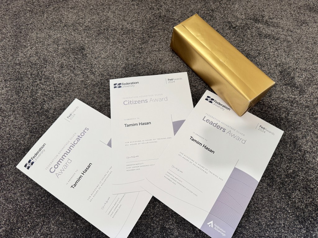Recognized with three Federation Advantage Awards and selected to represent FedUni at TEQSA 2024, I’ve grown from a student leader to Chair of the Student Senate, contributing to university strategy, equity, and innovation.