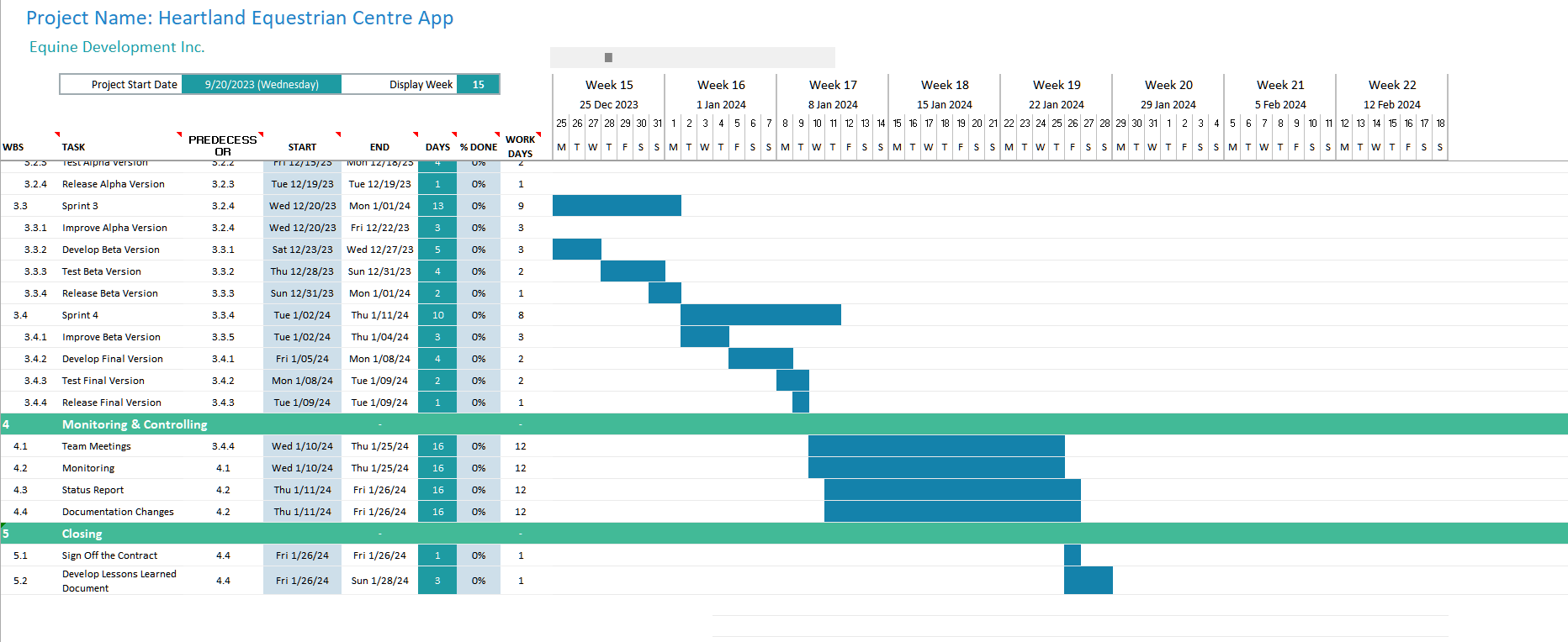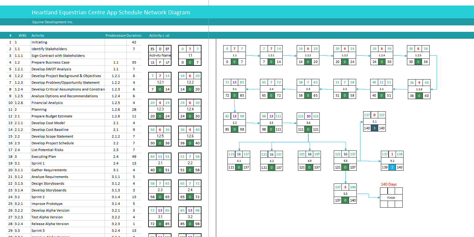 - Created the Gantt Chart, Project Schedule, and Network Diagram