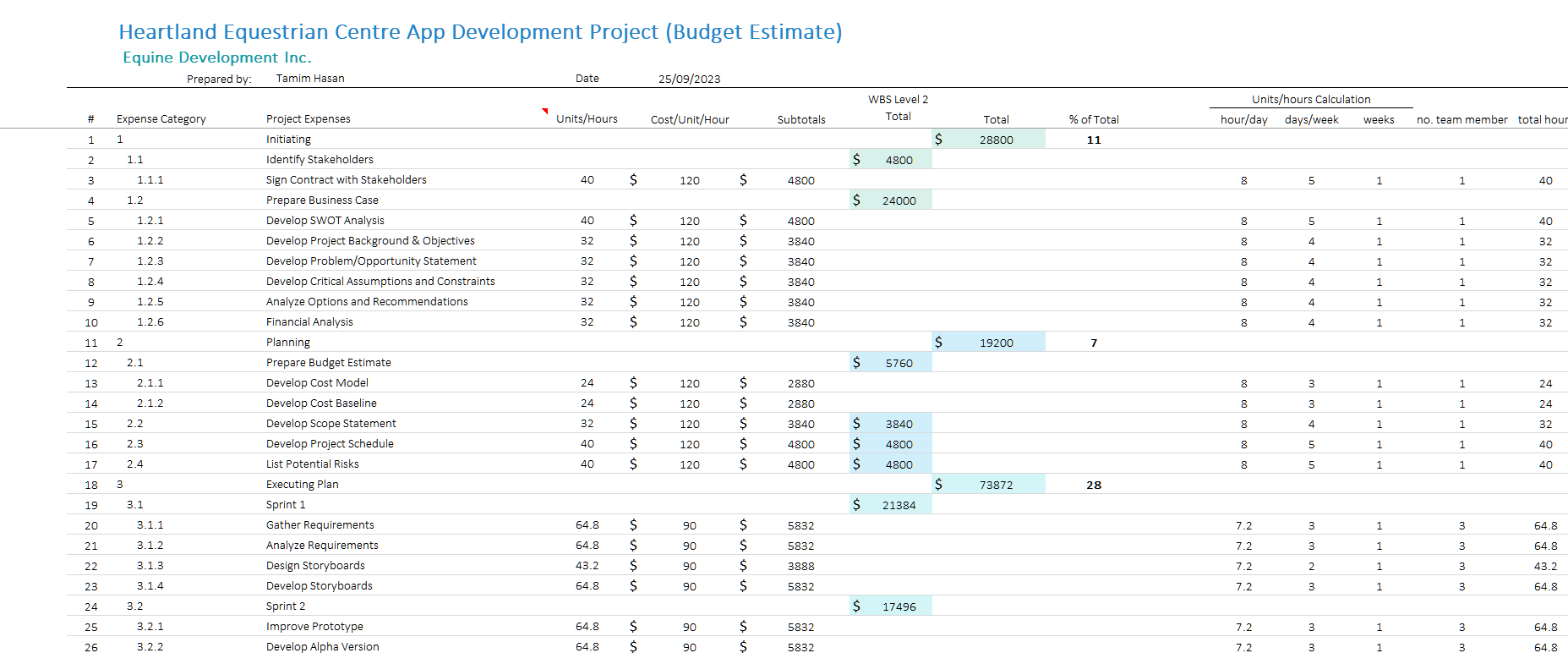 - Designed the Cost Model & Baseline Budget